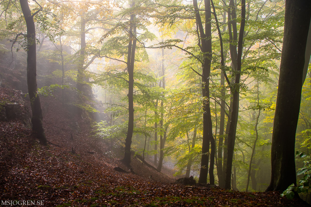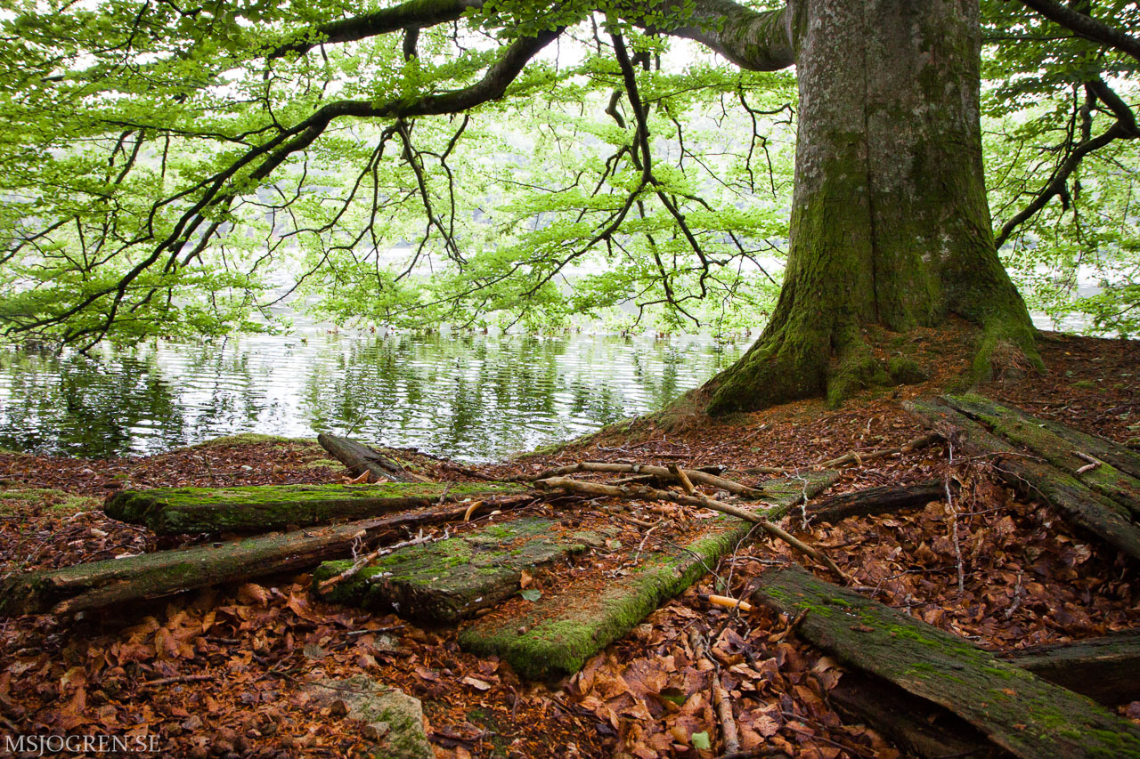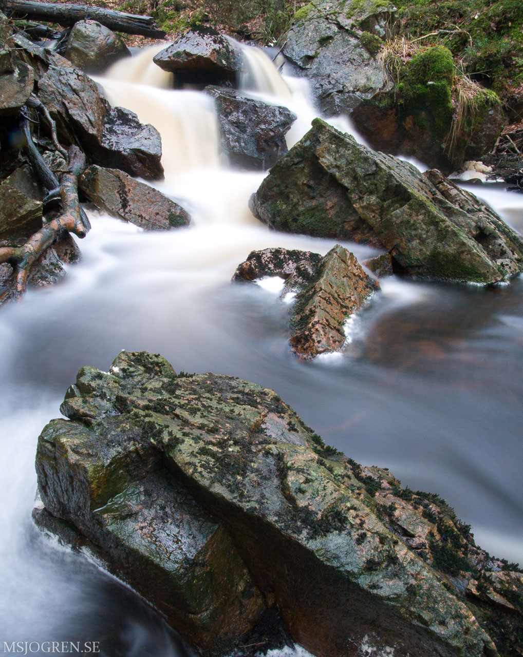 Bjersgård med lång slutare. Lövens snurr i bäcken ger en latjo effekt