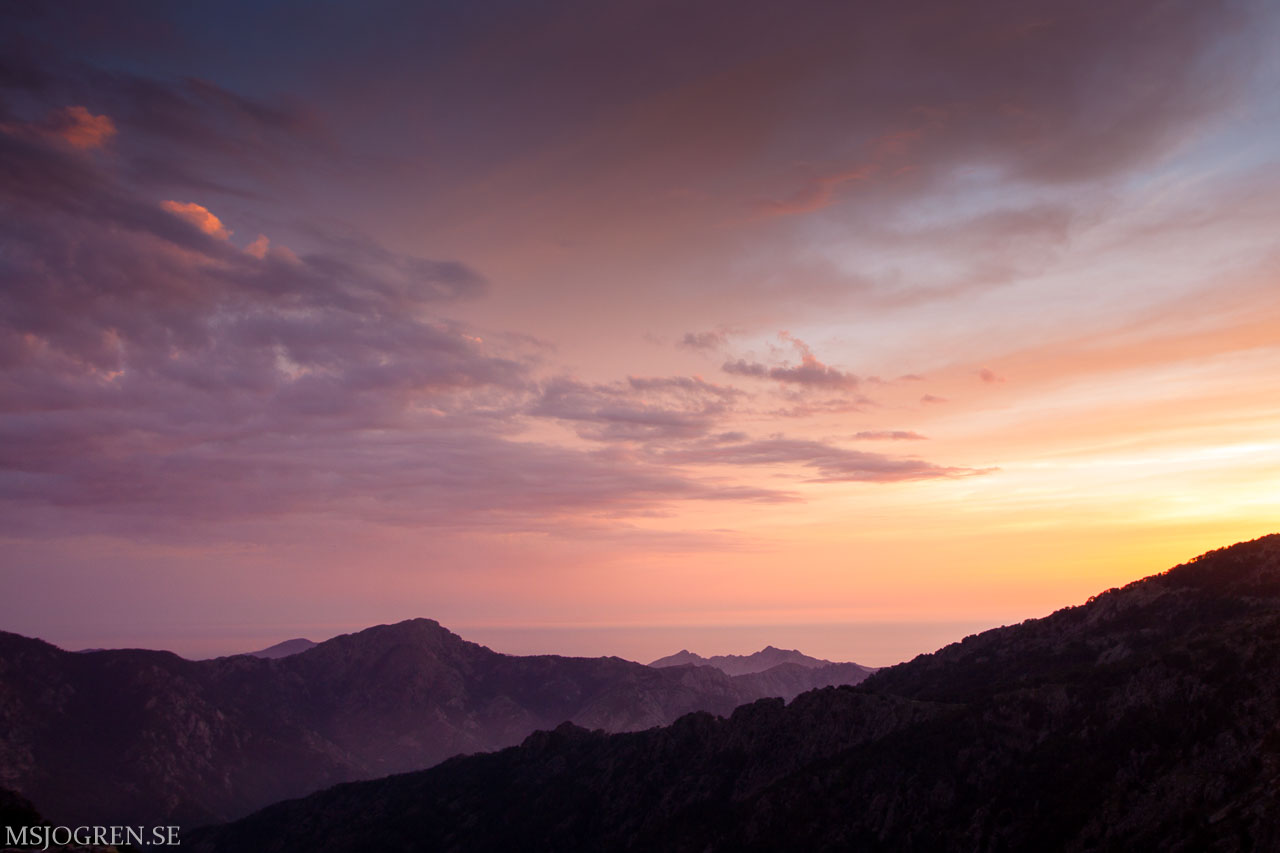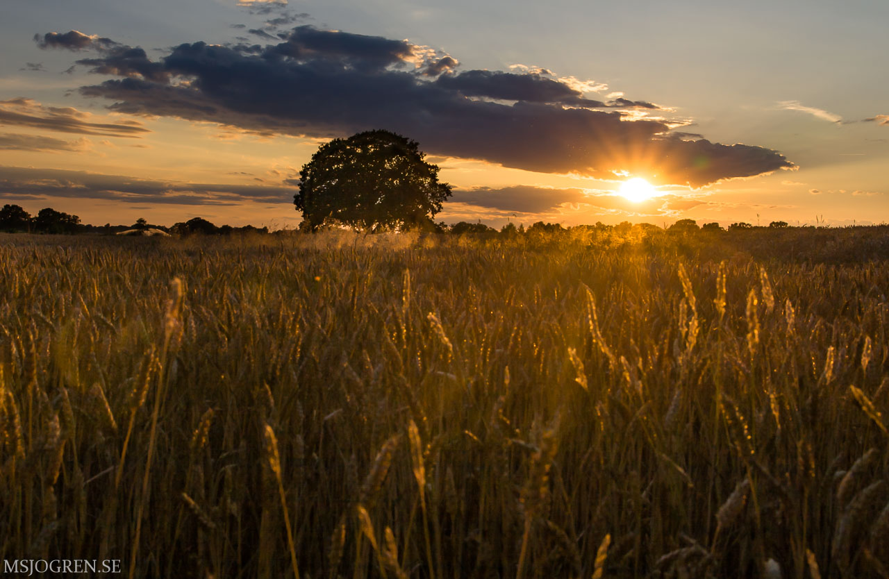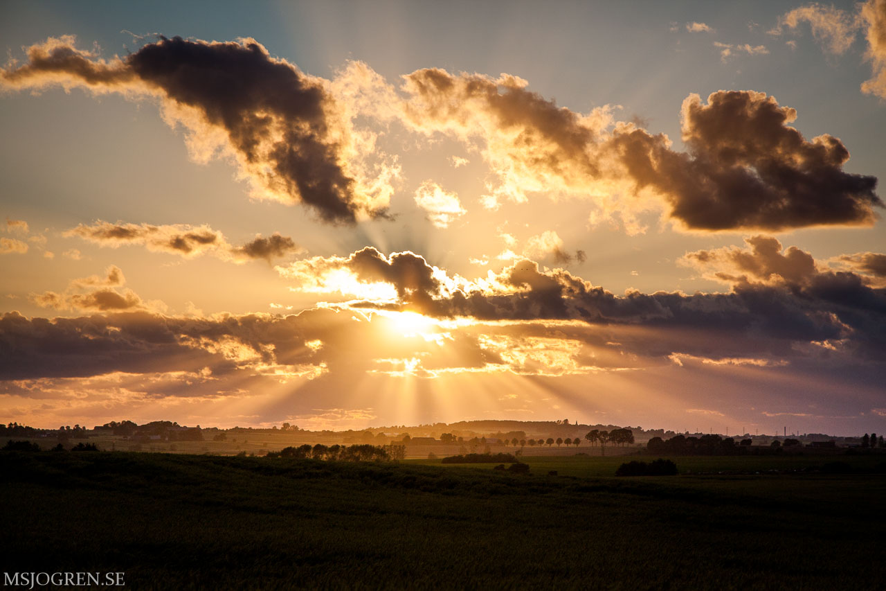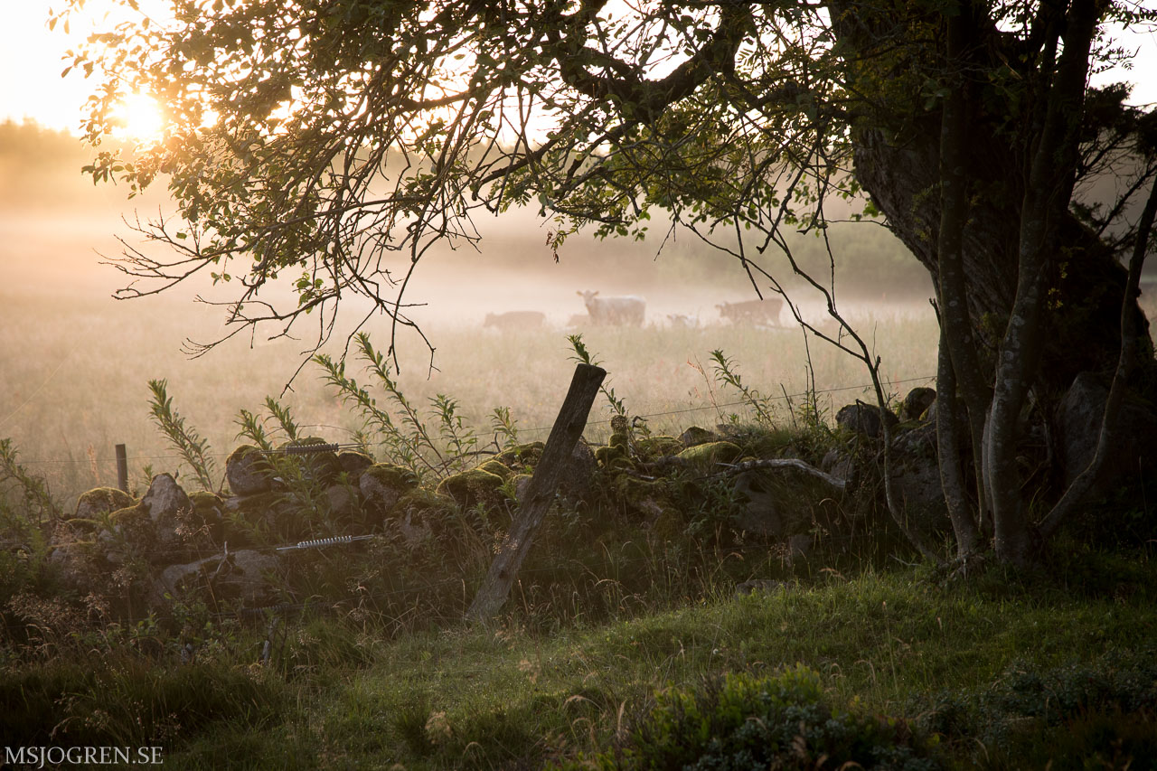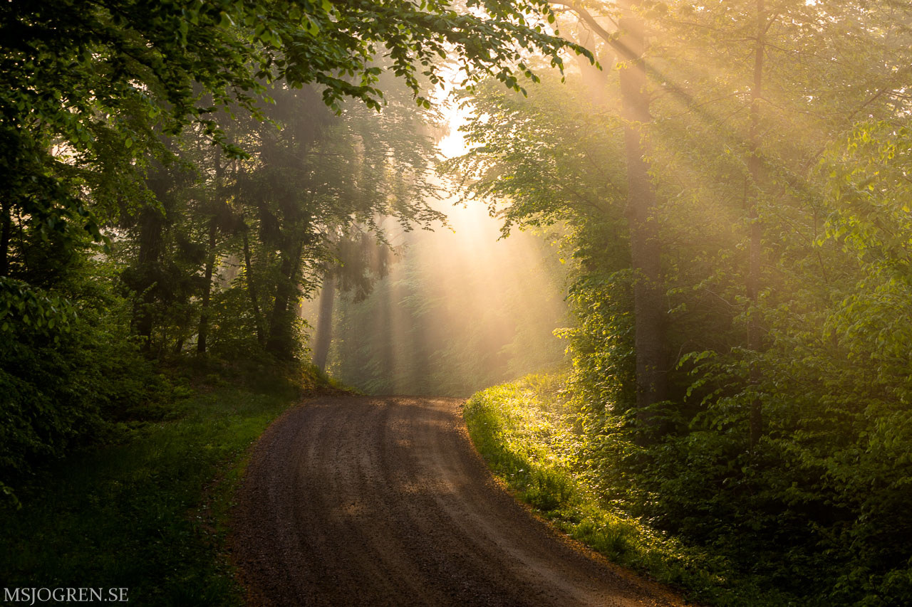 Morgonljus där solen just håller på att bryta genom