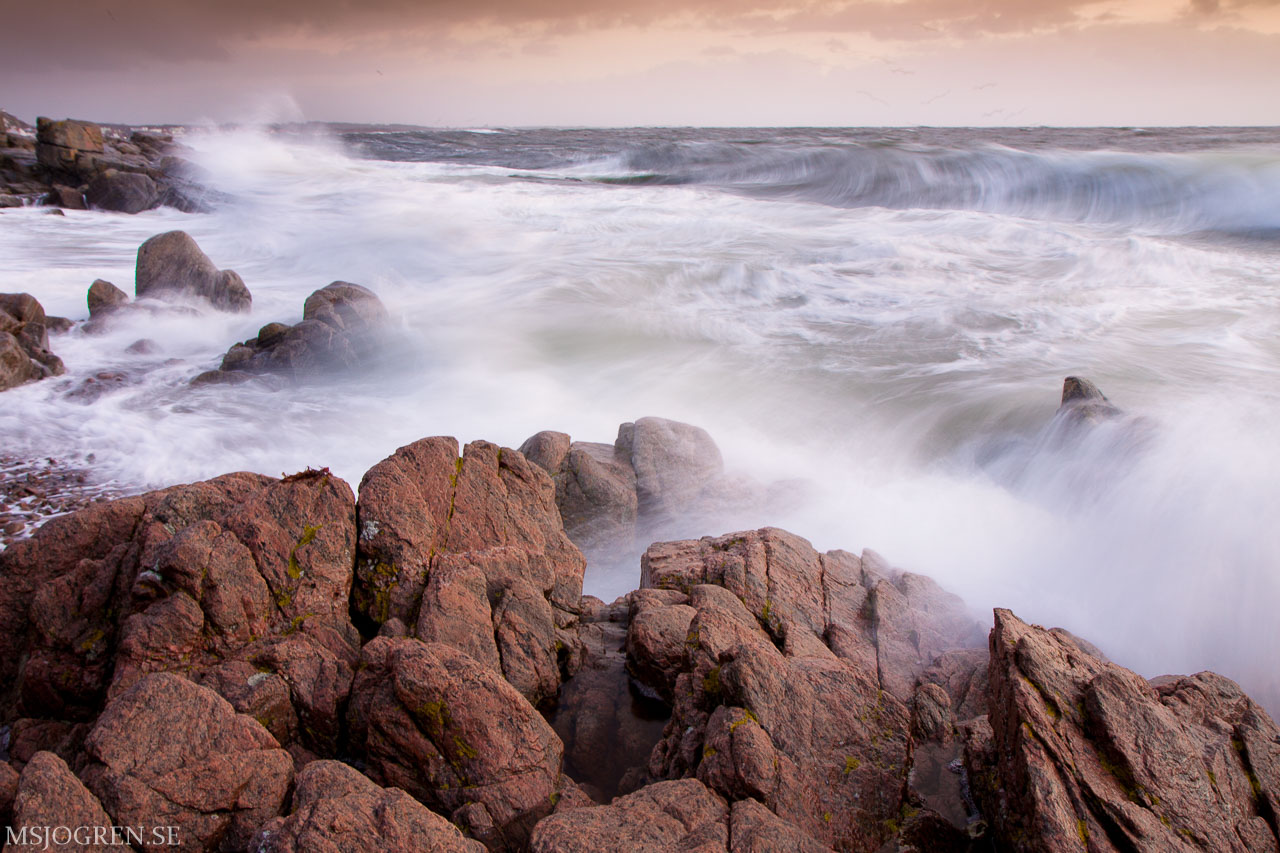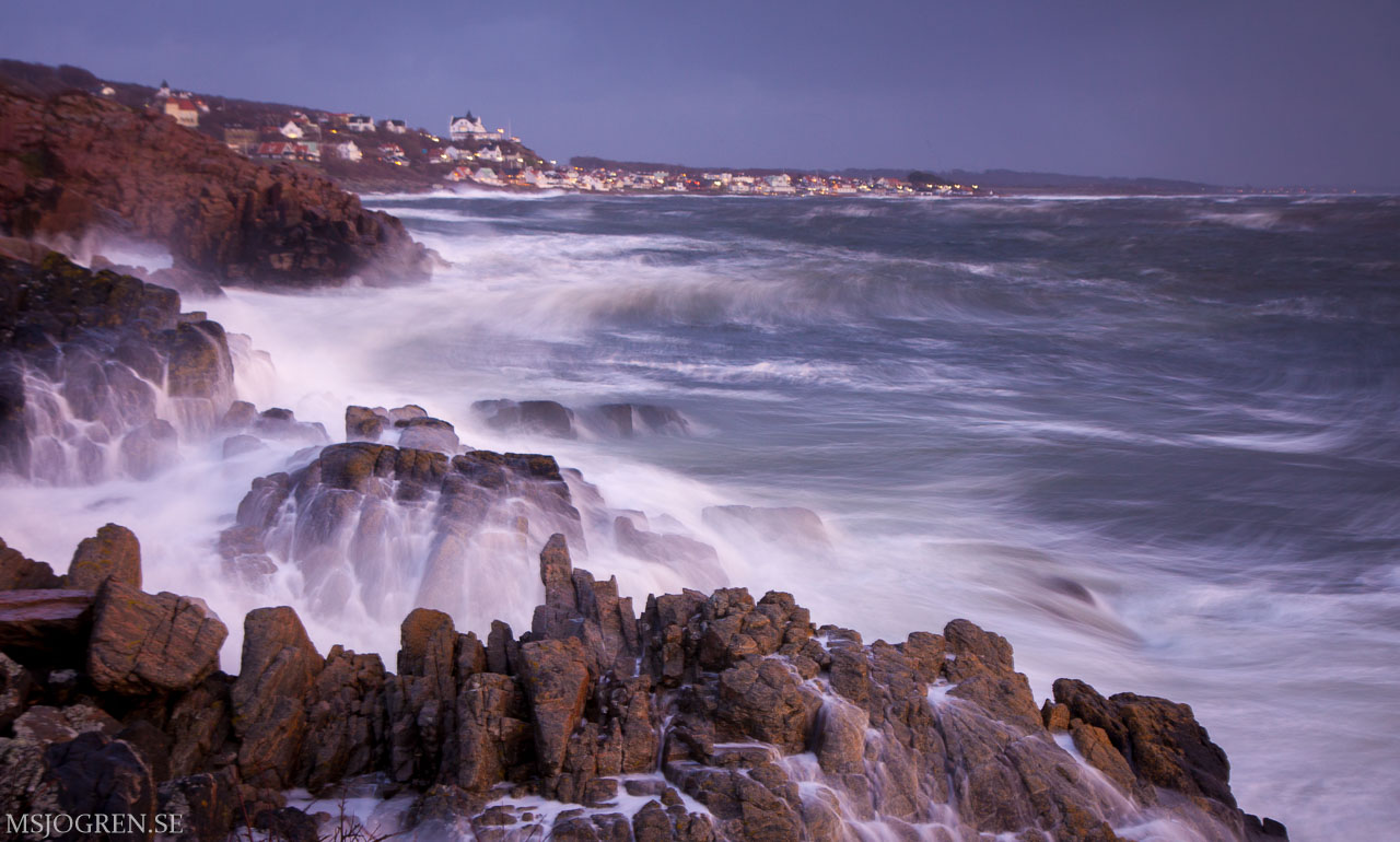Fotograferat under stormen Berit. Mölle skymtar i bakgrunden.