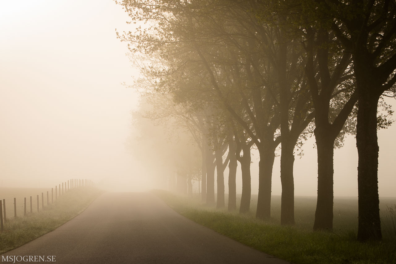 Frisk vårmorgon i Finja. Svärmors hus skymtar till höger mellan träden